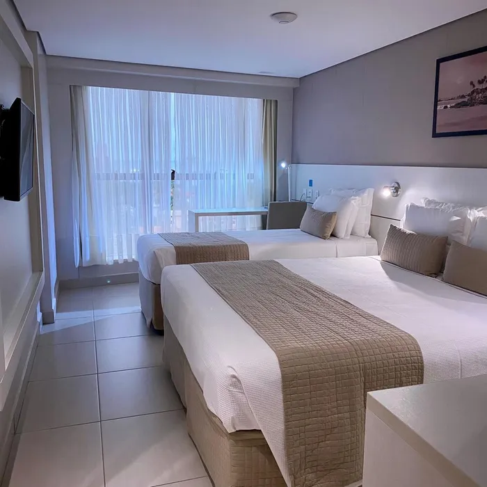 Regime do pacote: café da manhã (BB) — perfeito para passar o dia explorando a orla e brindar o pôr do sol no rooftop.